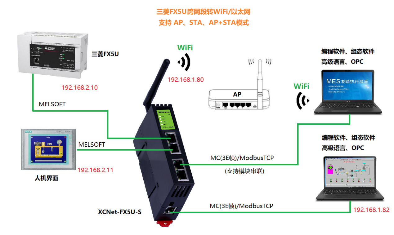 3、通過WiFi可進(jìn)行PLC編程、數(shù)據(jù)采集、數(shù)據(jù)交換和跨網(wǎng)段訪問。