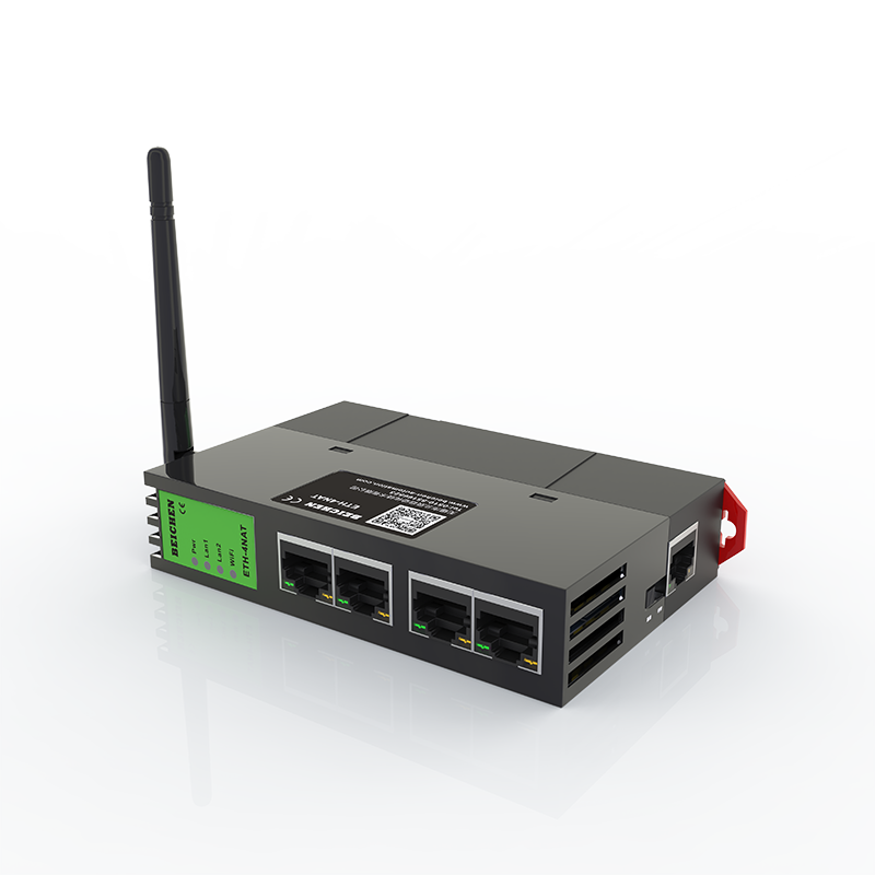 ETH-4NAT具備三個物理性接口,LAN1口為四個RJ45接口,具備交換機(jī)功能,主要用于連接PLC或數(shù)控機(jī)床;LAN2口為單端口RJ45,主要用于上位機(jī)的連接。WiFi接口為外置膠棒或磁吸天線,也可用于連接上位機(jī)。