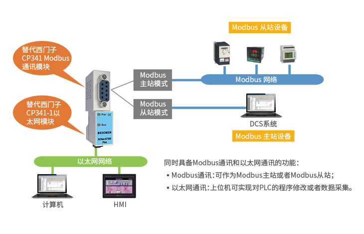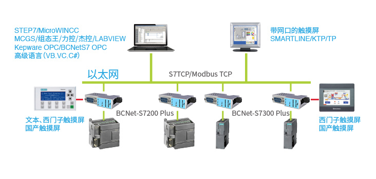 BCNet-S7300Plus是BCNet-S7300的高級版。在BCNet-S7300的基礎上,以太網(wǎng)口增加了支持與西門子帶網(wǎng)口PLC(S7-200SMART 、S7-1200/S7-1500、S7300PN、CP243-1/CP343-1/CP443-1)之間的通訊功能和ModbusTCP主站通訊。